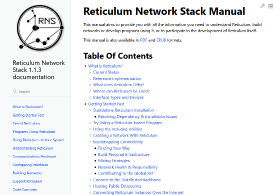 Reticulum Network Stackでは通信規格の異なるデバイス同士を接続してネットワークを構築可能です。データは暗号化された状態でやり取りされ、発信者の匿名性を保ったまま通信できます。Reticulum Network Stackのドキュメントは以下のリンク先で確認できます。