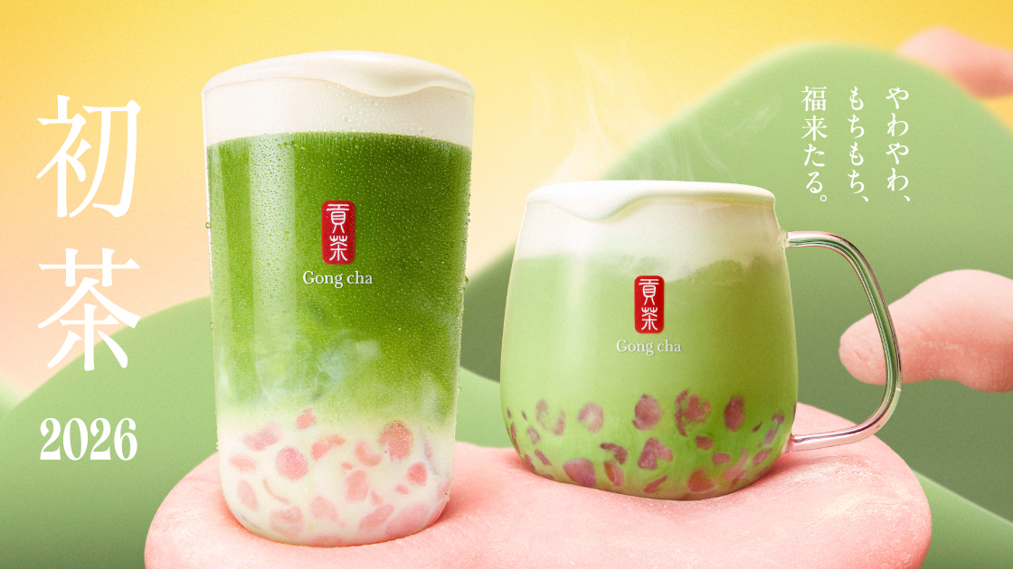世界で2000店舗以上を展開するグローバルティーカフェ「ゴンチャ」から、国産抹茶を100%使用したデザートティー「もちmochi抹茶」が2025年12月26日(金)からの期間限定で登場します。ほんのりピンク色のおもちパールと白いミルクフォームが鮮やかな緑色の抹茶ミルクティーにトッピングされ、縁起が良い見た目の新年にピッタリなドリンクに仕上がっているとのことです。