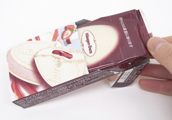 箱を開けて包装されたアイスを取り出します。