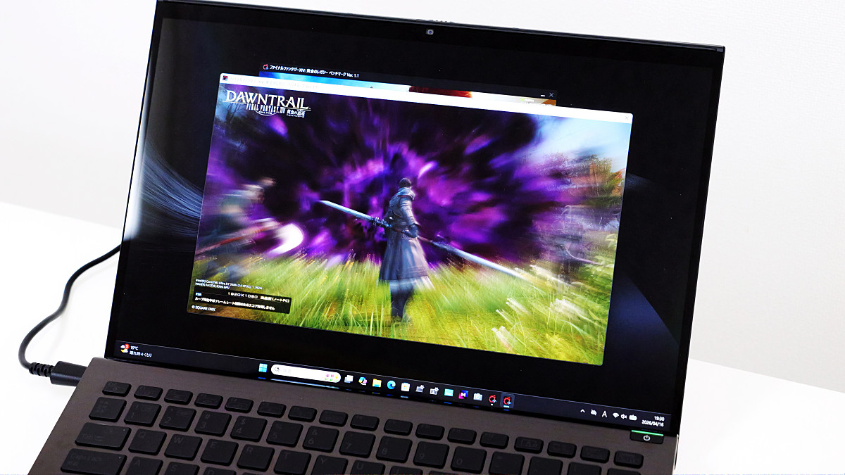 インテル® Core™ Ultra X7 プロセッサー 358Hは「Intel® Arc™ B390 GPU」という高性能なGPUを内蔵しています。「ファイナルファンタジーXIV: 黄金のレガシー ベンチマーク」で「1920×1080 高品質(ノートPC)」という設定でテストを実行した結果、スコアは10489でした。