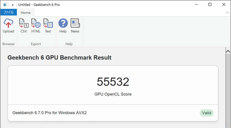 GPUでの計算処理性能テストも実行。OpenCLのスコアは55532です。