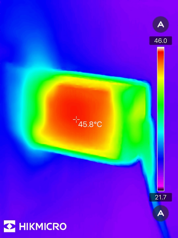 電源アダプターは45.8度でした。
