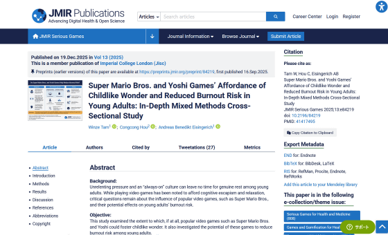 論文の著者であるインペリアル・カレッジ・ロンドンのAndreas Eisingerich教授は、「この研究は、若年成人における燃え尽き症候群対策の道筋が、従来の健康法だけでなく喜びを取り戻すことにもある可能性を示唆しています。『スーパーマリオブラザーズ』や『ヨッシー』のようなゲームは、燃え尽き症候群の特徴である冷笑主義や倦怠(けんたい)感に対する、強力な解毒剤となり得るのです」と述べました。