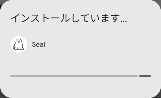 「アプリをインストールしました」と表示されればインストールは完了です。「開く」ボタンをタップするとSealが起動します。