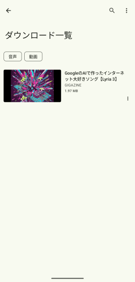 ダウンロードが完了した状態。ダウンロードした動画のサムネイルが画面中央に表示されます。