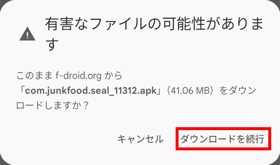 ダウンロードしようとすると以下のメッセージが表示されるので「ダウンロードを続行」をタップします。