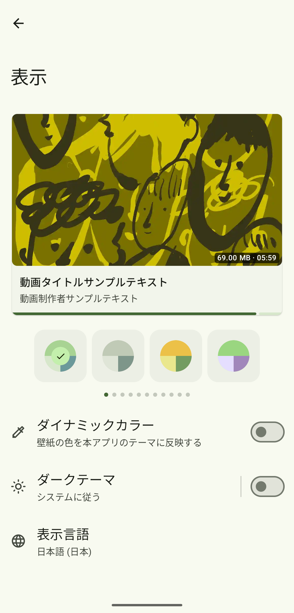 UIの見た目について、特徴に挙げられていた「Material Design 3」と関連する設定項目です。