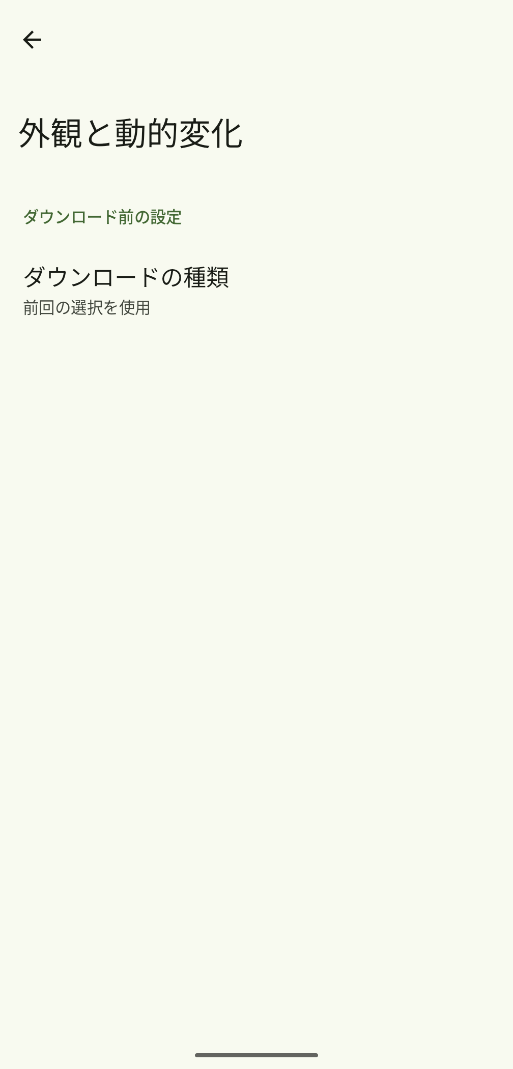 ダウンロードを開始する前に「ダウンロード前の設定」画面が表示されます。設定画面の「外観と動的変化」はこの設定を毎回行うか二回目以降は同じ設定を使用するかを指定するものでした。「ダウンロードの種類」は以下から選択できます。