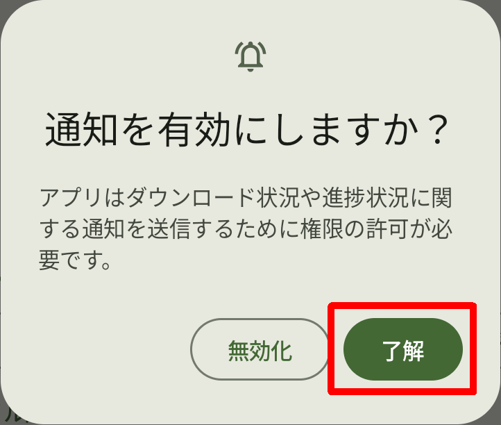 初回実行の場合は通知を有効にするかを尋ねられるので問題なければ「了解」をタップします。