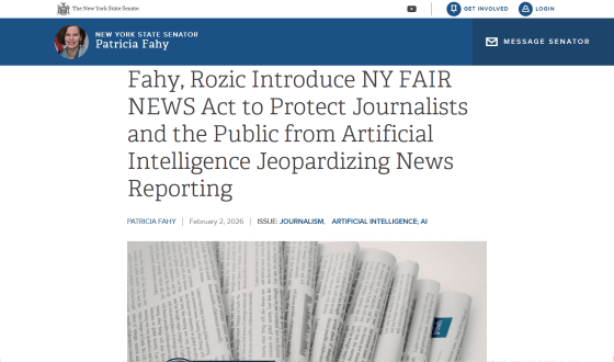 近年は生成AIが幅広い業界で使用されていますが、報道業界では生成AIを使った低品質で誤解を招くニュースが氾濫することへの懸念もあります。現地時間の2026年2月9日、ニューヨーク州議会に「生成AIコンテンツにラベルを貼り、公開前に人間がレビューすることを報道機関に義務づける法案」が提出されました。