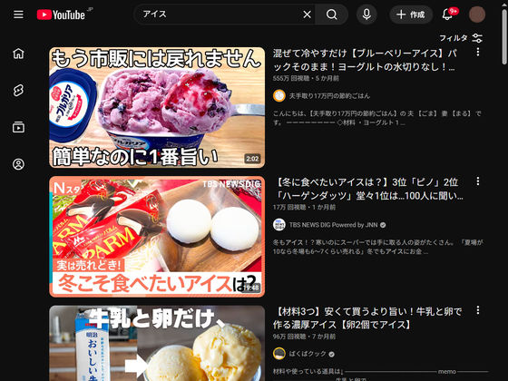 例えば「アイス」と検索した場合、以下のように検索結果の最上部にショート動画が表示されます。