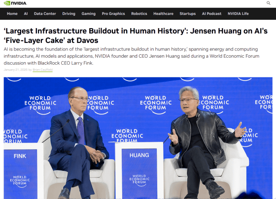 NVIDIAのジェンスン・フアンCEOが、スイスのダボスで開催された世界経済フォーラム年次総会(ダボス会議)のメインステージで対談し、AIを「5層のケーキ」にたとえて重要性を強調しました。