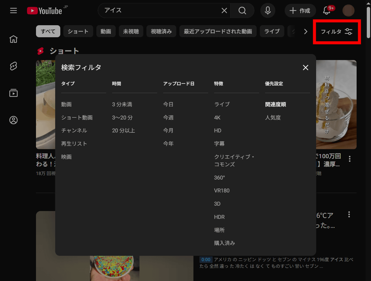 YouTubeで検索ツールを使うと、検索結果の最上部にショート動画が表示されます。新たに、フィルタ機能を使って検索結果からショート動画を除外することが可能になりました。