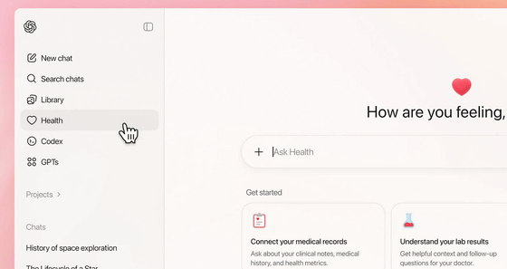 OpenAIが「ChatGPT ヘルスケア」を発表、ChatGPTが個人の健康記録やアプリのデータに接続して問診してくれる - GIGAZINE
