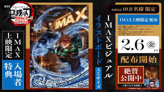 上映が行われるのはグランドシネマサンシャイン池袋と109シネマズ大阪エキスポシティの全国2館で、IMAX上映の限定入場者特典として「IMAXビジュアル イラストボード」が配布されます。