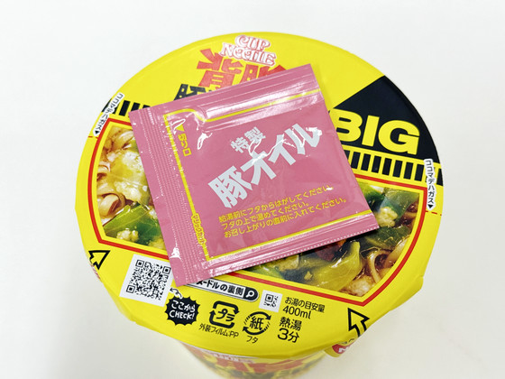 にんにくと背脂がガツンと香る「カップヌードル 背脂豚骨醤油 ビッグ」をもやしカスタムマシマシで食べてみた