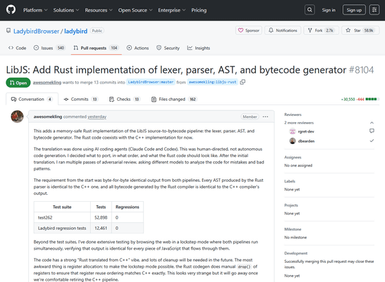 将来のChrome代替ブラウザとして注目されるLadybirdがC++からRustへの移行を開始、AIを活用し2週間でJavaScriptエンジンの移植に成功