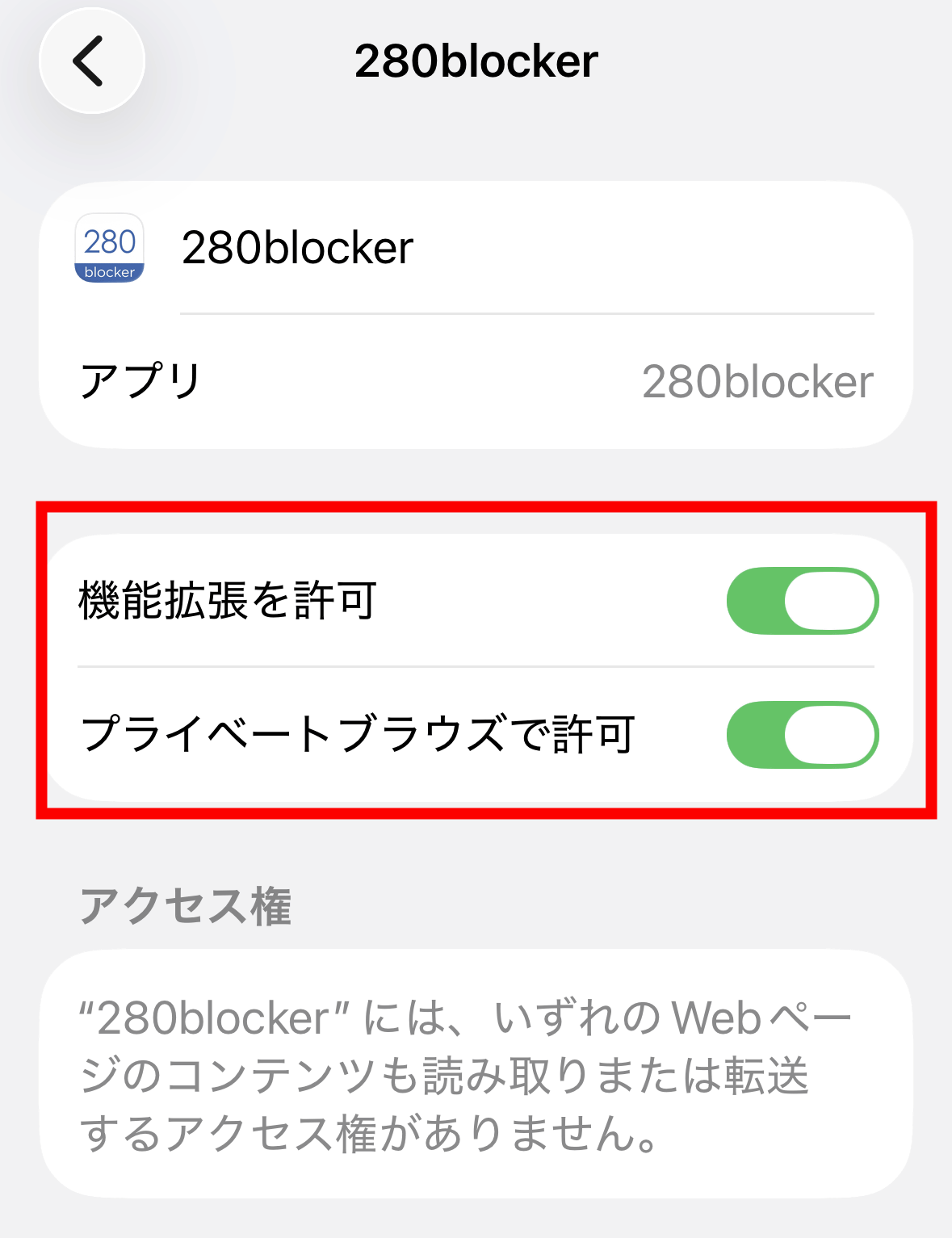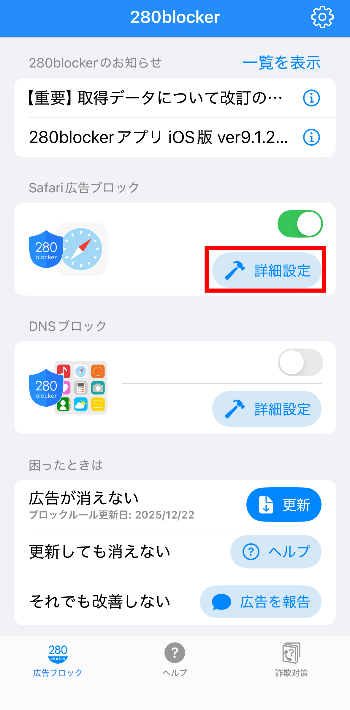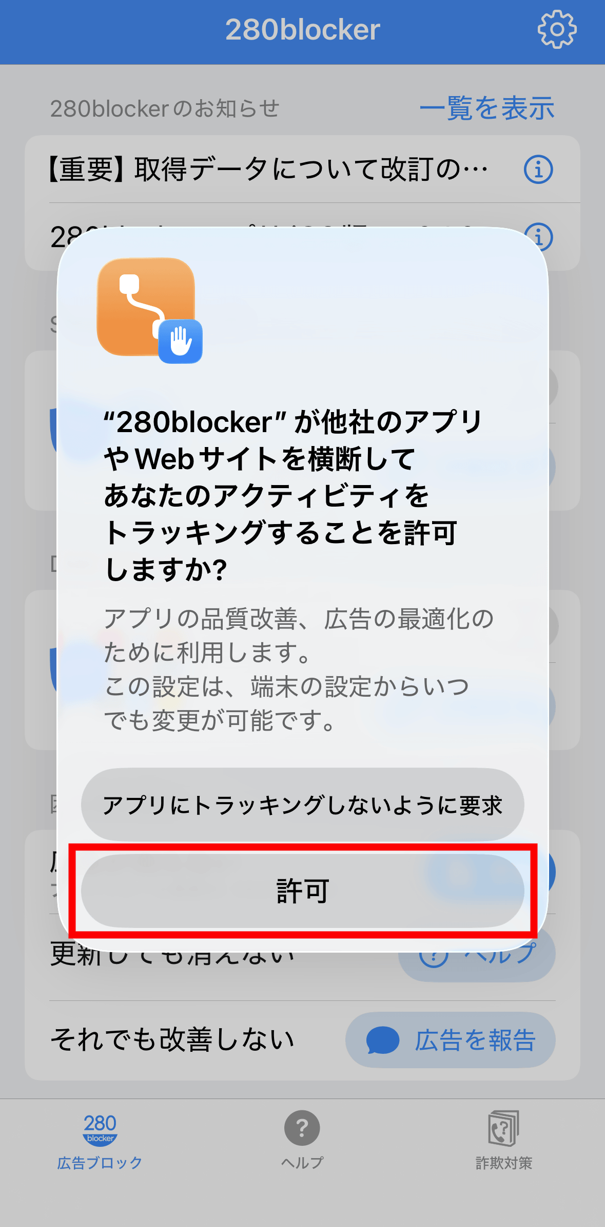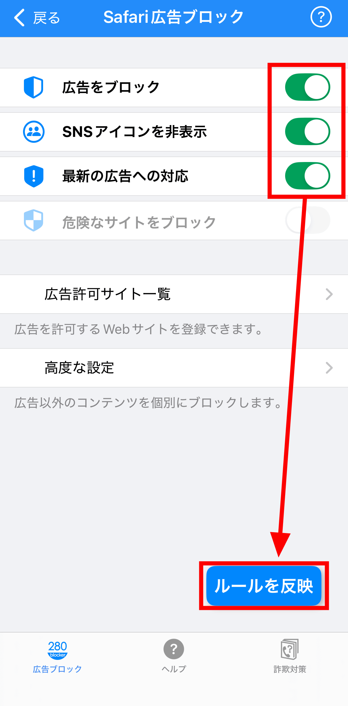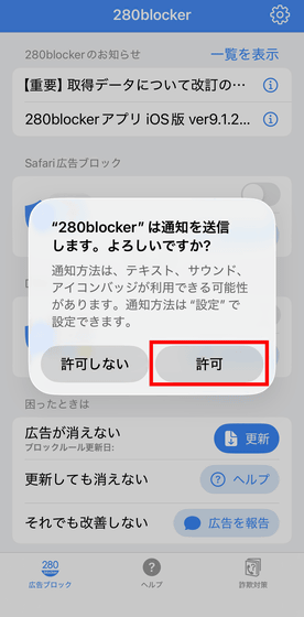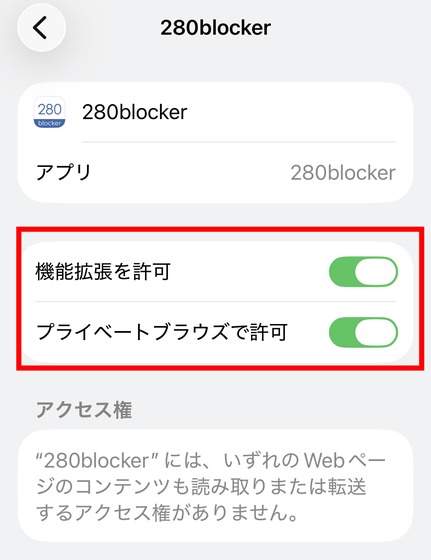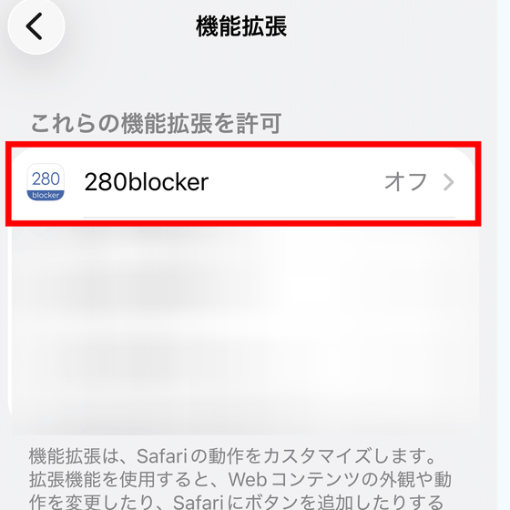 「280blocker」をタップすればOK。