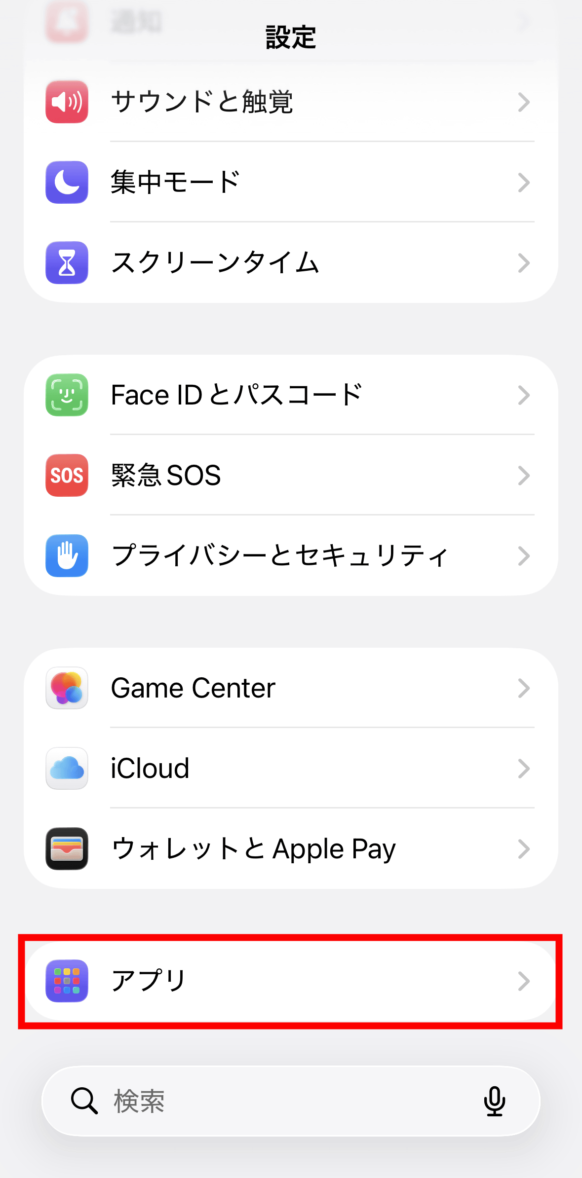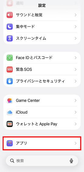 まずはSafari広告ブロックの機能を確かめます。Safari広告ブロックを有効化するため、端末の「設定」アプリを開いて「アプリ」をタップ。