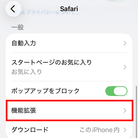 「一般」にある「機能拡張」をタップします。