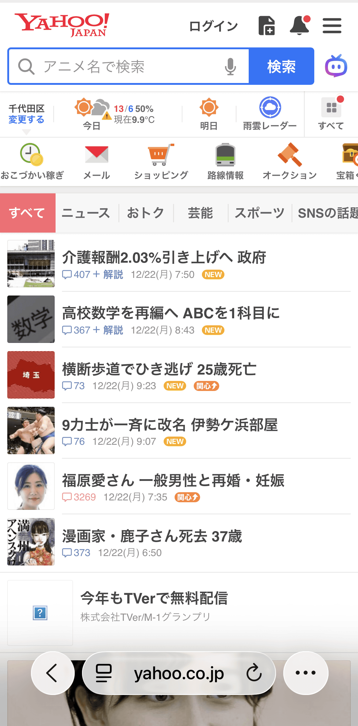 次に、Safari広告ブロックをオンにして再度同じウェブサイトにアクセス。すると、バナー広告や検索欄の下にある大きな広告が消えていました。
