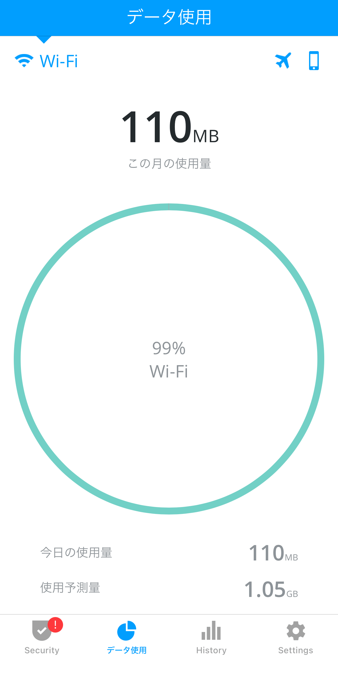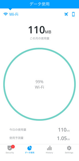 5回アクセスしたところ、通信量は合計で110MBでした。