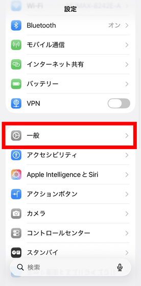 続いて、「設定」アプリを開いて「一般」をタップ。