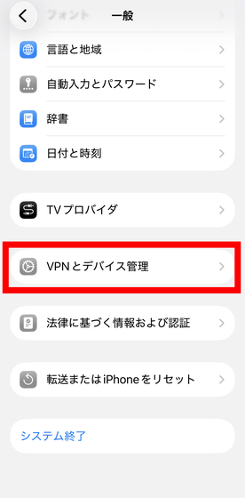 「VPNとデバイス管理」をタップ。