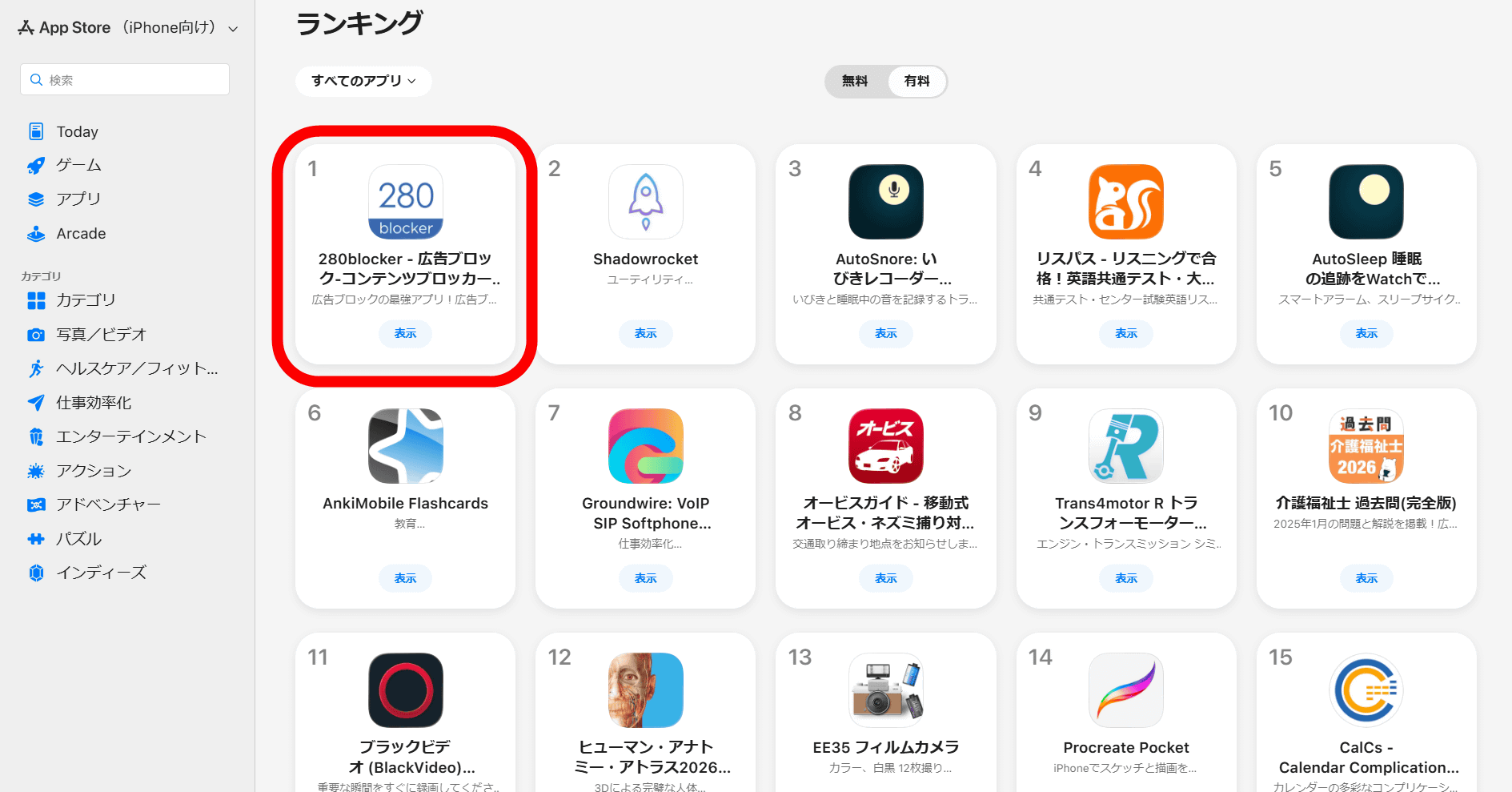 「280blocker」をタップ。