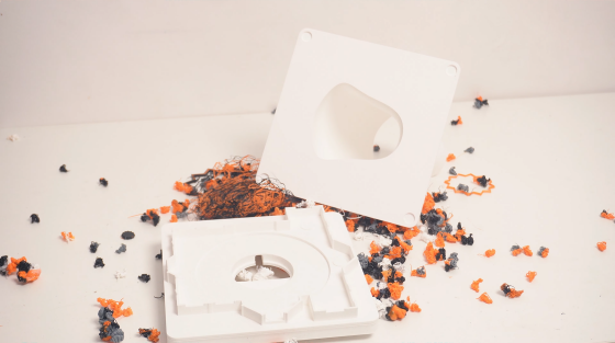 まず、失敗作やサポート材などのごみを細かく粉砕します。