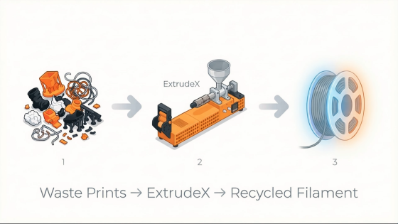 3Dプリントの廃棄物を再利用可能なフィラメントに変える「ExtrudeX」