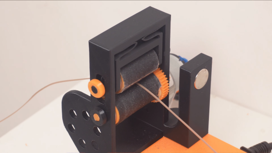 フィラメントがプーラーにかかると、あとはプーラーが自動的にフィラメントを引っ張り続けてくれます。