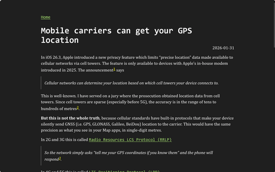 Appleはこうした情報を保護する新たなセキュリティ機能をiOS 26.3で導入しました。これは、携帯電話基地局を介して携帯電話ネットワークに提供される「正確な位置情報」データを制限するものです。ウォン氏は「モデムシリコンとファームウェアの完全な制御を可能にすることで、少なくとも一つの大量監視手段を制限する良い一歩を踏み出しました。今後はユーザーが通信事業者への位置情報応答を無効化できるようにし、デバイスに対してそのような試みがなされた際にユーザーに通知する必要があります」と解説しました。