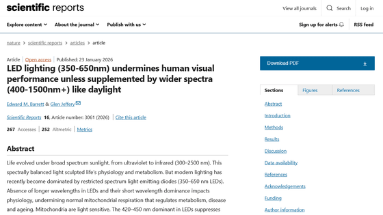 2027年末までに製造・輸出入が禁止される蛍光灯からLEDへの移行が進んでいますが、主流となっているLEDは波長を一部制限したもので、赤外線が足りないために人体に悪影響を及ぼす可能性があるという研究が発表されました。
