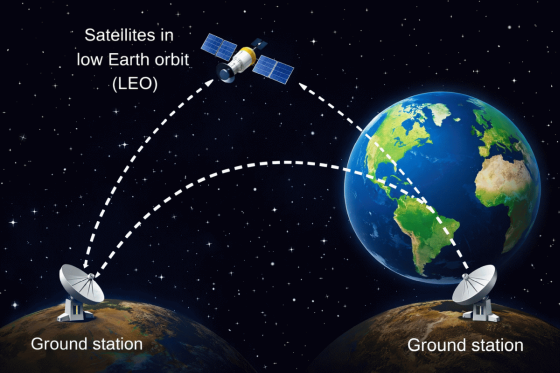 通信面の制約も、宇宙データセンター構想における重要な課題とされています。地上のデータセンターは高速な光ファイバー網に直接接続されていますが、宇宙に設置する場合には地上のような光ファイバーなどの物理的な線ではなく、地上局と人工衛星を電波で結ぶ衛星通信(衛星リンク)に依存する形になるとのこと。地上では数百メートルから数キロメートルで済む通信経路が、宇宙では地上局と軌道上設備の往復を伴うため、物理的な距離そのものが遅延として現れます。