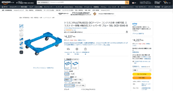 読者からプレゼントしてもらった「OCドーリー 50Lオリコン用コンテナ台車」