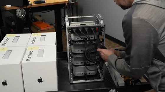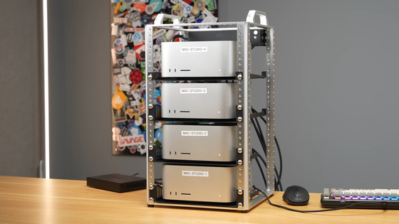 エンジニア兼YouTuberのジェフ・ギアリング氏が、Macを低遅延で連結できるmacOS 26.2の新機能「RDMA over Thunderbolt」をテストするため、Appleから提供された4台のM3 Ultra搭載Mac Studioで構成されるAI用クラスターの検証を行いました。