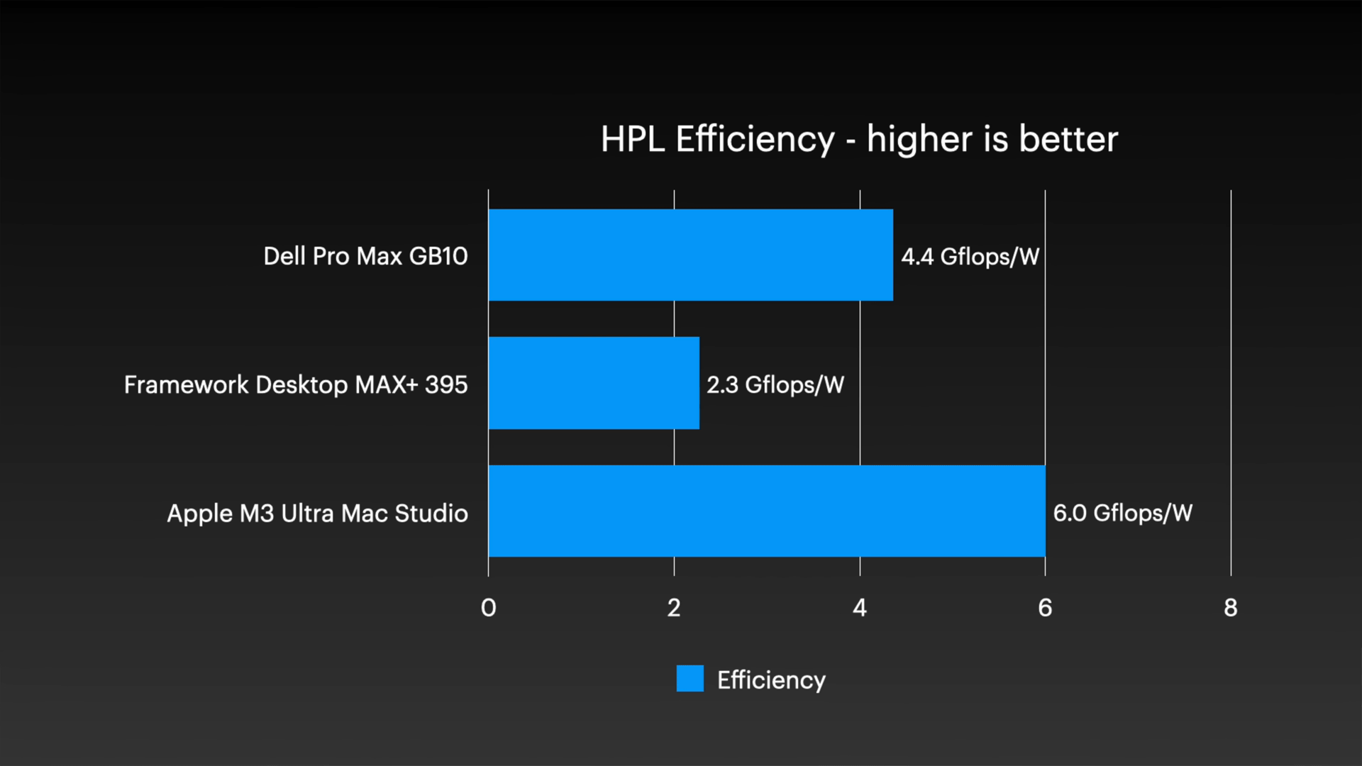 倍精度(FP64)でのテストでは、M3 Ultra Mac Studioは1TFLOPSを越え、Dell Pro Max with GB10のほぼ2倍、Framework Desktopの4倍以上をマークしています。