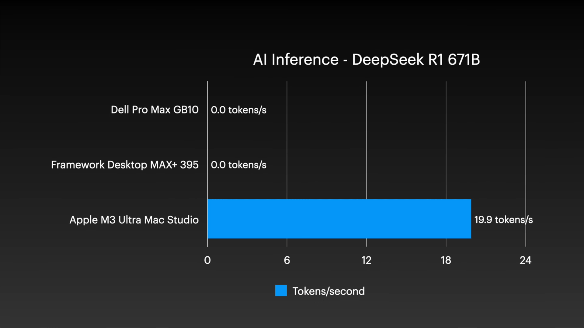 特にDeepSeek R1などの超大規模モデルに至っては、他2つのシステムでは単体ノードでの実行すら不可能であり、Mac Studioの持つ巨大なユニファイドメモリの優位性が明確になっています。