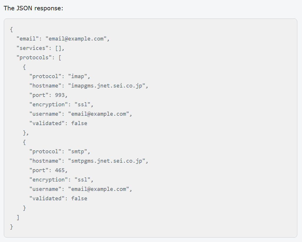 つまり、インターネット上の公開設定が住友電気工業側のホスト名に利用者を誘導しているのではなく、Microsoftの自動検出サービスそのものが当該情報を返している疑いが強いということがわかりました。テクノロジー系メディアのArs Technicaは、Outlookの挙動やコマンドラインからの確認を根拠に、Microsoftの自動検出APIが返す自動設定情報が、住友電気工業側のドメイン配下のサブドメインを指していたと指摘。「example.comを使ったOutlook設定を試す人は一定数いるため、テストのつもりで入力した認証情報がsei.co.jp配下の提示先サーバーに誤って送られてしまう可能性がある」という見解を示しました。