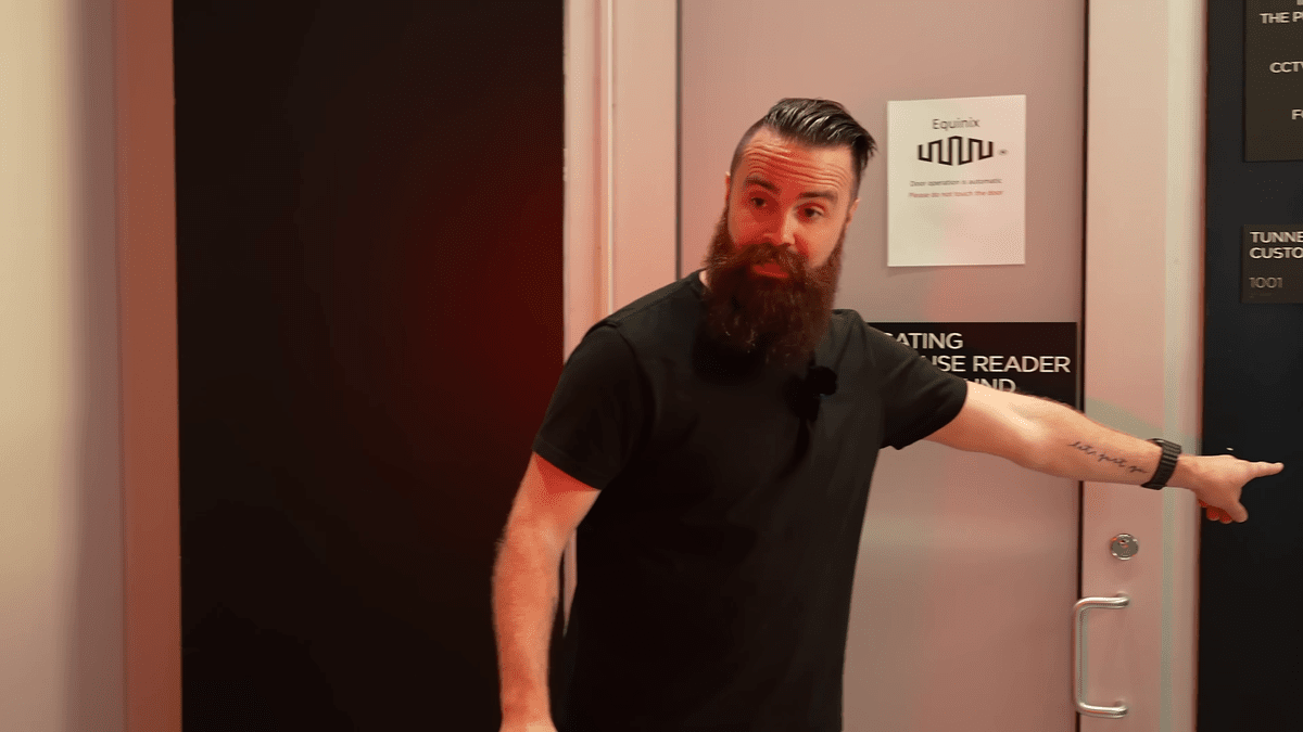 この人がNetworkChuck。今回はエクイニクスの協力を得て同社のデータセンターに見学するそうです。