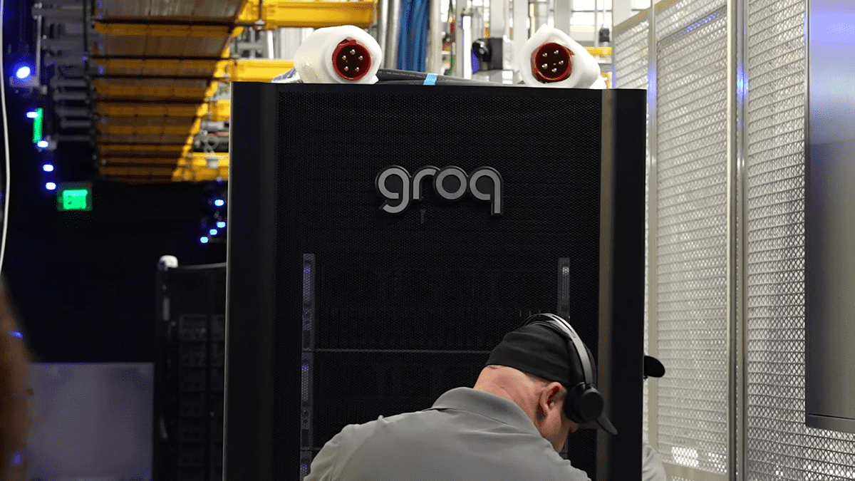 NetworkChuckが現場ですれ違った人が運んでいたラックには、「Groq」と書かれていました。AI関連の半導体を開発するスタートアップです。