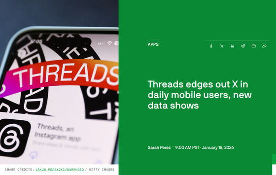 モバイルアプリ版のThreadsは過去数カ月でデイリーアクティブユーザー数が増加し続けており、2026年1月7日時点でのデイリーアクティブユーザー数は1億4150万人に達しているそうです。なお、モバイルアプリ版のXのデイリーアクティブユーザー数は1億2500万人なので、その差は1650万人となります。