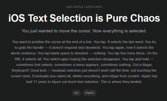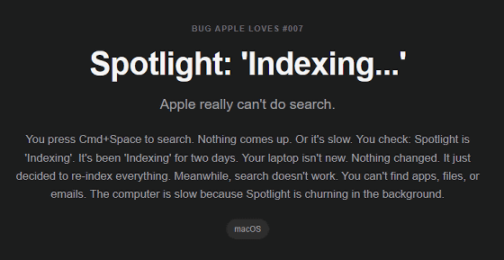 「Appleが放置しているバグ」を集めたウェブサイト