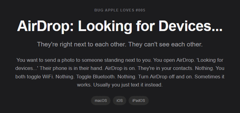 「Appleが放置しているバグ」を集めたウェブサイト