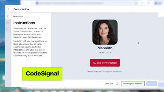 続いてフィールド氏は、CodeSignalのAI面接官と面接を行いました。