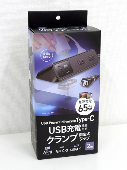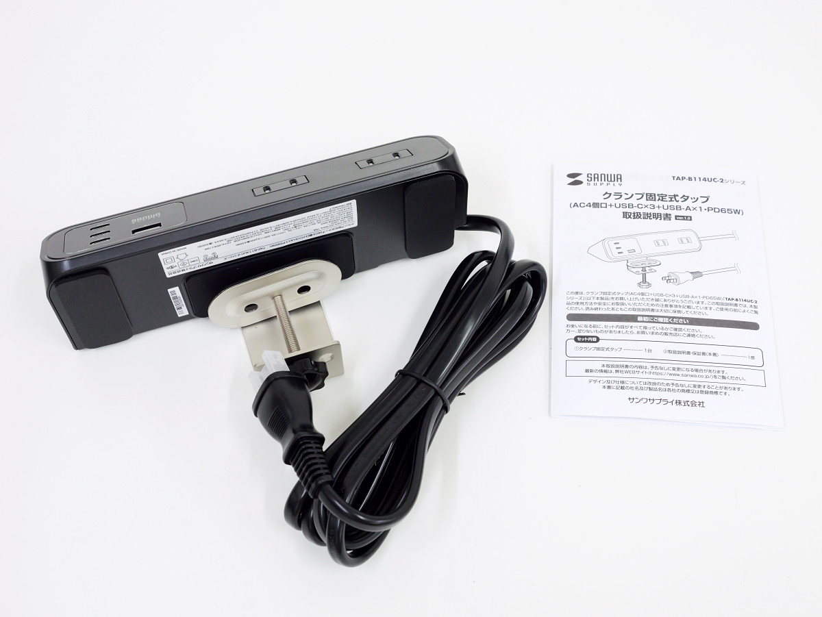 Amazon.co.jp: サンワサプライ クランプ固定式タップ(AC4個口+USB-C×3+USB-A×1・PD65W・ブラック) TAP-B114UC-2BK : パソコン・周辺機器