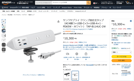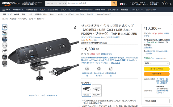 クランプ固定式タップの標準価格は税込1万4300円で、Amazon.co.jpではブラックとホワイトのどちらも税込1万300円で入手できます。