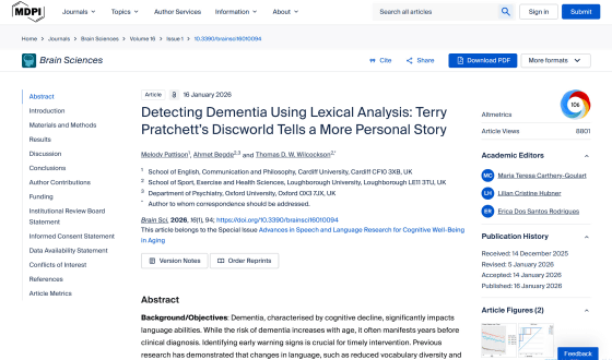今回の研究結果からは、人々が残したテキストデータを分析することで認知症の兆候を早期に発見できる可能性が示唆されています。トーマス氏らは、「重要なのは言語データが既に存在していることです。人々は電子メール・レポート・メッセージ・オンラインコミュニケーションを通じて膨大な量の文書を作成しています。プライバシーと同意を適切に保護すれば、文章スタイルの微妙な変化が、日常生活の機能に影響が出るずっと前に認知機能低下を早期に検知するのに役立つ可能性があります」と述べました。