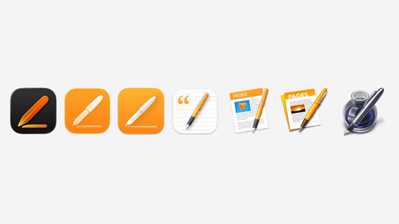 加えて、Pagesのアプリアイコンのうち最新の3つが持つ問題点を、「最近の3つは擁護するのが非常に難しいです。主な利点は、よりシンプルで単色であるため、より広範なデザインシステムやアイコンファミリーに容易に適合するという点のみです。それでも、シンプルな形状が読みやすさを向上させるわけではありません。何人かの人は、黒地にオレンジ色のアイコンについて『端末関連の何かだと思った』と言っていました。最近のアイコンは、鉛筆の下の『線』(それとも影?)が鉛筆とほぼ同じ太さになっており、ゲシュタルト心理学からすると鉛筆と溶け合っています」と指摘。